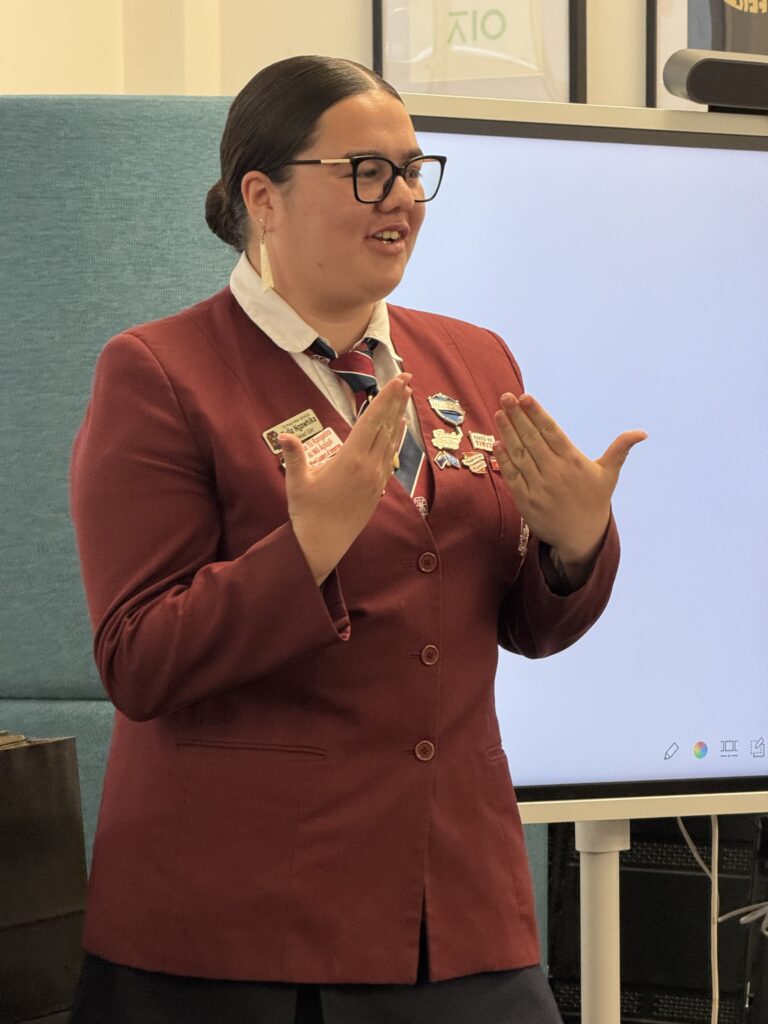Amber Peck followed with a heartfelt talk about her first year at university. She spoke honestly about the challenges of balancing study, work and wellbeing and about learning to trust herself through uncertainty. “Know your why,” she said. “And don’t be afraid to ask for help when you need it.” She also encouraged the group to stay connected with friends and family and to give themselves permission to do things differently. “I chose to stay at home this year and it gave me time to figure out what I really want to do. It’s been the best decision I could have made.”